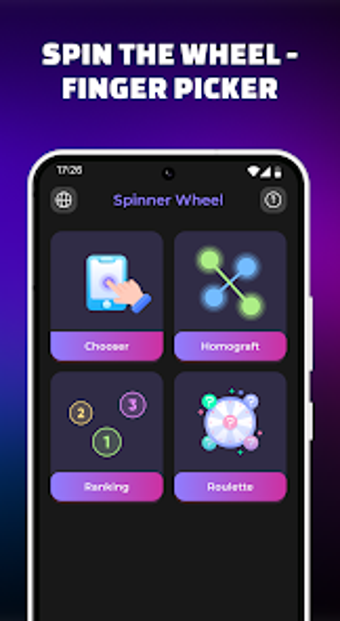 Spin Wheel - Random Picker là một ứng dụng Android sáng tạo được thiết kế để đơn giản hóa việc ra quyết định thông qua việc lựa chọn ngẫu nhiên. Ứng dụng phong cách sống miễn phí này có một bánh xe tùy chỉnh có thể được sử dụng cho nhiều mục đích khác nhau, chẳng hạn như chọn món ăn, số hoặc thậm chí là tên. Người dùng có thể tạo ra vô số bánh xe lựa chọn được điều chỉnh theo nhu cầu cụ thể của họ, cung cấp một cách thú vị và hấp dẫn để đưa ra quyết định. Ứng dụng hỗ trợ nhiều chức năng bao gồm một trình tạo số ngẫu nhiên và một công cụ lựa chọn bằng ngón tay, làm cho nó linh hoạt cho các tình huống khác nhau.